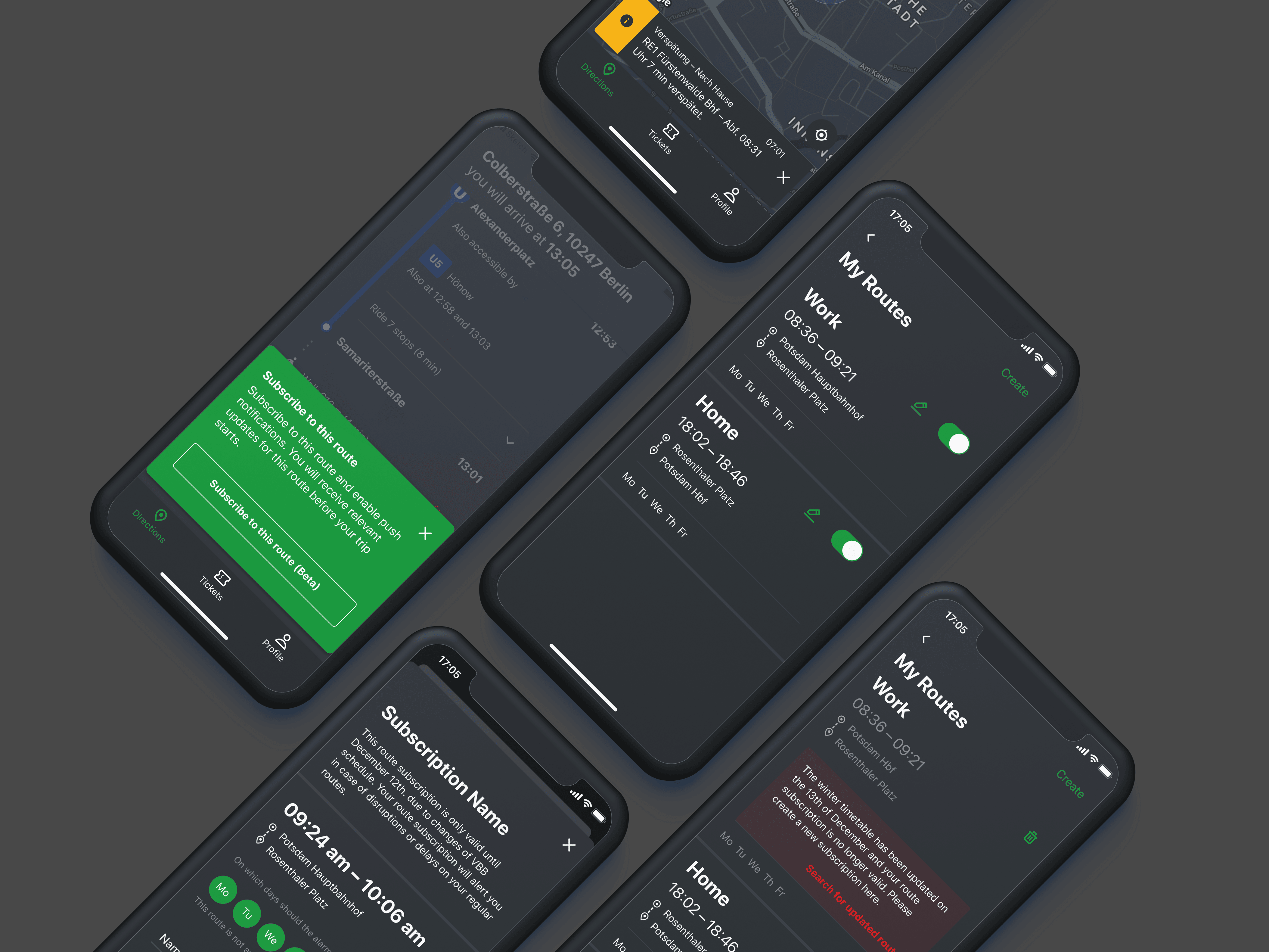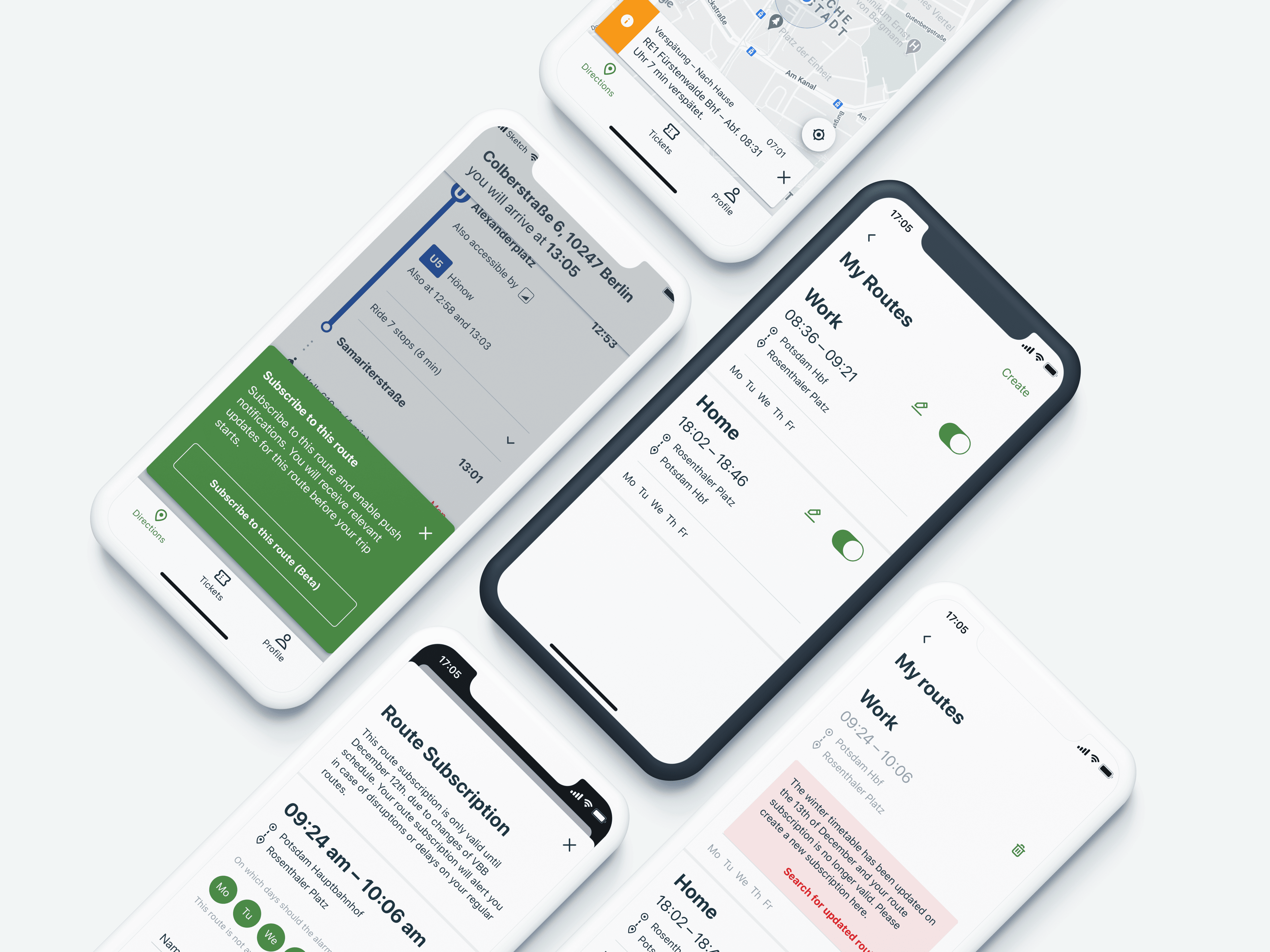 Here are some key feature screens. For more, please download the S-Bahn Berlin Connect app.