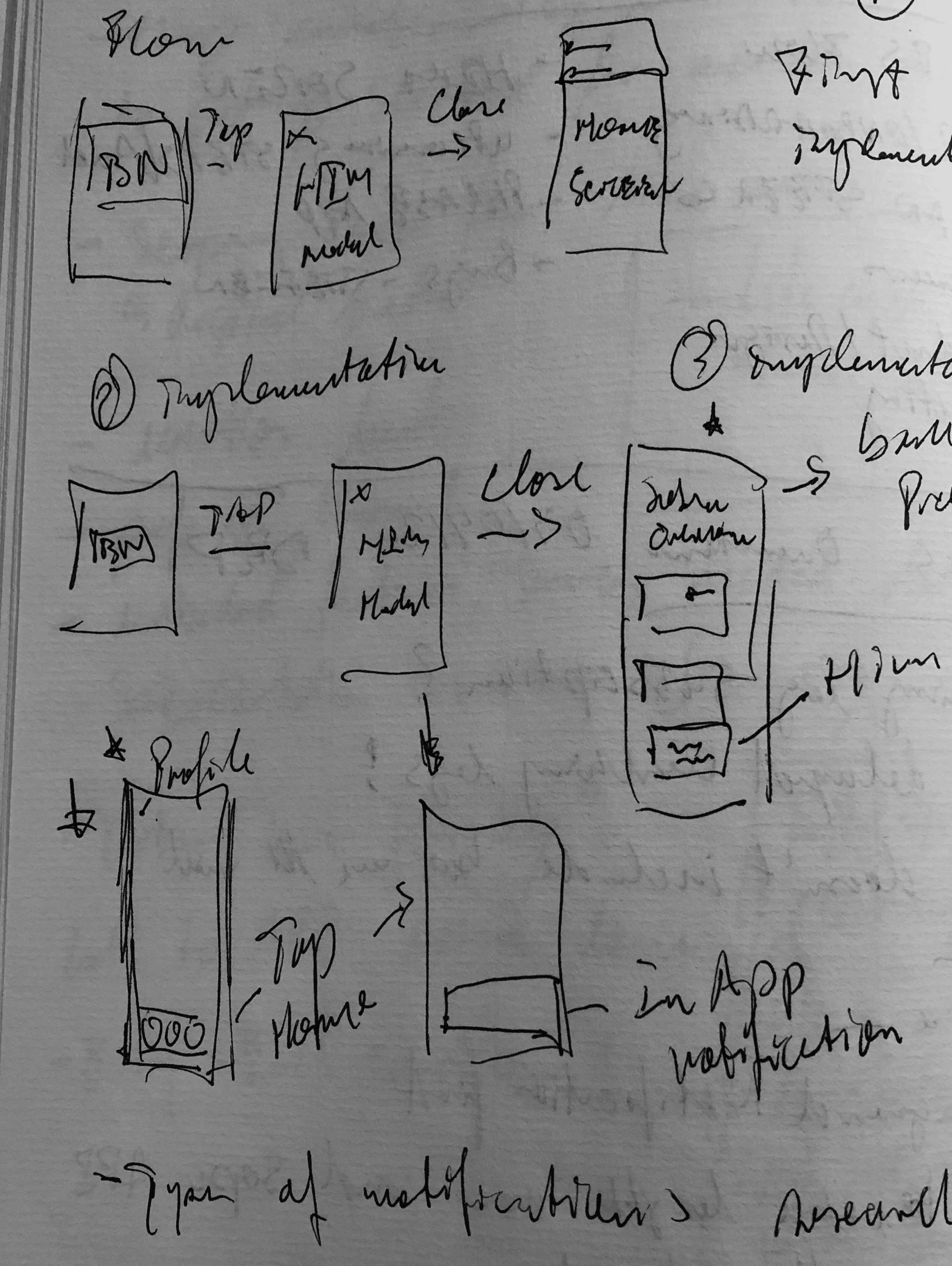 Initial sketches were created to align on the user flow and break it down into potential implementation phases.